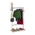 Moderný stojan na kabáty vyrobený z bambusu a kovuFunkčný dizajn sa v tomto kompaktnom stojane stretáva s moderným vzhľadom z prírodného bambusu a čierneho kovu. Najmä na chodbe a v spálni môžete prakticky využiť stojaci šatník a vytvoriť si cenný úložný priestor pre svoje oblečenie. Položte topánky a tašku na poličku. Do šatne je možné umiestniť šaty, košele, blúzky a iné odevy. 6 bočných háčikov na oblečenie usporiadaných na boku je vhodných na bundy a šály.Charakteristika:Funkčné: Stojan na šaty kombinuje vešiak na šaty, stojan na topánky a 6 háčikov v kompaktnom rámeVšestranný: Môže byť flexibilne umiestnený ako stojan na šaty na chodbe alebo stojan na šaty v spálniOtvorené: Úložný priestor na topánky a tašky, háčiky na bundy, vešiak na košele, šatyModerné: Prírodný bambus v kombinácii s čiernymi kovovými tyčami - dodáva šatníku moderný vzhľadDetaily: Stabilný stojan na košeľu - rozmery V x Š x H: cca 168 x 80 x 38 cm - samostatne stojaci bez vŕtaniaObsah:1x stojan na šaty, demontovanýS montážnym materiálomParametre:Celkové rozmery V x Š x H: cca 168 x 80 x 38 cmVáži cca 2,4 kgVyrobené z bambusu a kovuV prírodnej a čiernej farbeRegál na topánky Š x H: približne 76,5 x 32,5 cmNosnosť police až do cca 6 kgŠírka koľajnice na oblečenie: cca 76,5 cmTyč môže byť naložená až do cca 15 kgRozmery háčika V x Š x H: cca 15 x 1,5 x 2,5 cmKaždý hák môže byť naložený až do cca 2,5 kgRD10031599