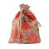 Látkové vrecúško na darček má svetlohnedú farbu s vianočným motívom. Zdobí ich vyobrazenie stromčekov a snehových vločiek červenej farby s metalickými odlesklami. Vo vrchnej časti vrecúška sú prevlečené svetlohnedé šnúrky, ktoré slúžia na zatiahnutie a zaviazanie vrecka.