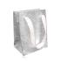 Taštička na darček, lesklý mriežkovaný povrch striebornej farby, stužky GY57