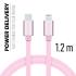 Detail Dátový kábel Swissten textilný s USB-C, Lightning konektormi a podporou rýchlonabíjania, ružovozlatý 71525205