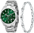 Značka: MASERATI | Kolekcia: Attrazione | Model: R8853151017 | Farba: strieborná | Farba: zelená | Farba puzdra: strieborný tón | Materiál puzdra: ušľachtilá oceľ | Napájanie: batéria | Materiál remienka: ušľachtilá oceľ | Funkcie: 24-hodinový ciferník | Funkcie: Darčekový set | Funkcie: Dátum - deň v mesiaci | Funkcie: Stopky 1/1 sekundy - 12 hodín | Vodotesnosť: 50M/5ATM | Sklíčko: minerálne | Tvar: okrúhle | Typ zapínania: Preklápacia pracka s poistkou | Číslice na ciferníku: indexy | Určenie: pánske | Minimálny obvod: 16 | Typ produktu: hodinky | Typ: ručičkové | Maximálny obvod: 21,5 | Šírka remienka: 22-20 | Priemer: 43 | Hrúbka: 10