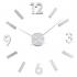 Elegantné nerezové hodiny s možnosťou inštalácie do ľubovoľného tvaru, veľkosti a rozmiestnenia.Číselník si môžete nalepiť v ľubovoľnom priemere či v rozložení podľa vlastnej chuti a fantázie.Typizovaný odporúčaný priemer je 60cm (ale aj viac).Z hodín si však môžete vytvoriť aj mnoho kreatívnych obrazcov a tvarov.Čísla číselníka - matný nerezový plech číslic je nalepený na penovej hmote dodávajúci výslednej inštaláciu 3D efekt. Zospodu penovej hmoty je samolepiaca fólia. Veľkosť čísel: 9cm.Ciferník, ručičky sú z kovu. Veľkosť veľkej ručičky od stredovej osi: 25cm. Veľkosť malej ručičky od stredovej osi: 18cm. Priemer ručičiek bez číslic v 18:00 hodín: 43cm. Priemer ciferníku: 10cm.Výška ciferníka: 3cm. Quartzový hodinový strojček na batériu AA 1,5 V s plynulým chodom. (Napájanie tužkovú AA batérií) sa vešajú klinček. Dodávané v papierovej darčekovej krabici. Materiál: brúsený hliník/ EVA pena.