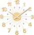 Nástenné hodiny LAVVU NUANCE v príjemnom metalickom odtieni, vďaka ktorému môžete hodiny ľahko kombinovať s ďalšími doplnkami vo vašom interiéri. Dizajn hodín navyše rozžiari každú miestnosť. Stred hodín je vyrobený z masívneho dreva. Naň nadväzujú moderné kovové ramená v tvare slnka s výraznými plastovými číslicami v rovnakom tóne, a pravými brúsenými sklenenými kamienkami na konci. Hodiny poháňa kvalitný nemecký strojček UTS.Zobrazenie času: analógovéTyp strojčeka: quartzFarba: zlatáRádiom riadené: nieTichá sekundová ručička: nieZnačka: LAVVUPriemer (cm): 49Materiál: plast, drevo , kovSekundová ručička: nieLCT5012