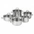 súprava nerezových hrncov českej výroby, značky KOLIMAX, obsahuje: hrnce so sklenenými pokrievkami: 15cm/1,5L, 18cm/3,0L, 22cm/5,5L, kastróle so sklenenými pokrievkami: 18cm/2,0L, 22cm/3,0L