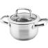 Hrniec s pokrievkou, priemer 16 cm, vyrobené z prvotriednej nehrdzavejúcej ocele, sklonerezová pokrievka s otvor pre paru, masívne sendvičové dno, stupnica litráže, silikónové držadlá, možnosť umývať v umývačke riadu