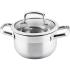 hrniec s pokrievkou, priemer 18 cm, vyrobené z prvotriednej nehrdzavejúcej ocele, sklonerezová pokrievka s otvor pre paru, masívne sendvičové dno, stupnica litráže, silikónové držadlá, možnosť umývať v umývačke riadu