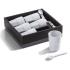Netradičná sada na kávu 6-dielna porcelánová biela s lyžičkami. Na kávu aj na čaj, bez ušiek. Umývačka riadu & mikrovlnna rúra: ÁNO Dodávaná v papierovej darčekovej kazete. Rozmer: pre kávu espresso Rozmery:21,5x20,2x6,6cm