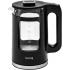 Rýchlovarná kanvica, objem 1,7 litra, výkon 2200 W, sklenená / nerezová, 360 ° otočná základňa, priehľadné okienko so stupnicou, odnímateľný filter proti vodnému kameňu, odklápacie veko, LED osvetlenie