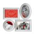 Plastový multi fotorám so sklom na viac fotiek.Rozmer fotografií: 3 fotografie s rozmerom 10x15cm 1 fotografia s rozmerom 10x10cmMulti fotorám je určený na zavesenie na stenu horizontálne alebo vertikálne. Technické údaje: Ochrana fotografie: sklo Farba: biela (BIN112090W) Materiál: plast Rozmer multirámu rámu: 31x31cm