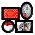 Plastový multi fotorám so sklom na viac fotiek.Rozmer fotografií: 3 fotografie s rozmerom 10x15cm 1 fotografia s rozmerom 10x10cmMulti fotorám je určený na zavesenie na stenu horizontálne alebo vertikálne. Technické údaje: Ochrana fotografie: sklo Farba: čierna Materiál: plast Rozmer multirámu rámu: 31x31cm bin112090