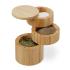 S touto bambusovou krabičkou máte vždy po ruke to správne korenie na ochutenie vašich obľúbených jedál. Nádoba na korenie má 3 otočné priehradky a je ideálna na uskladnenie soli, korenia, byliniek alebo iného korenia. Bezpečne uzatvárateľné magnetické uzávery chránia obsah soľničky pred vlhkosťou. Soľnička vďaka výrobe z bambusu s ozdobným zrnom prináša do vašej kuchyne kúsok prirodzenosti.Rozmery V x H: cca 13 x 9 cm2 priehradky V x H: cca 2,5 x 7 cm1 priehradka V x H: cca 5,5 x 7 cmHmotnosť: cca 320 gMateriál: bambusFarba: prírodná10045701