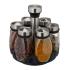 Skoncujte s chaosom v kuchynskej skrinke! Tento moderný kolotoč na korenie vnesie poriadok do vašej kuchyne. 6 nádob na korenie uchováva vaše najdôležitejšie koreniny a vďaka nastaviteľným vložkám na posypanie sa dá použiť priamo ako korenička. Držiak na korenie je otočný o 360° a ľahko sa prenáša pomocou rukoväte, takže budete mať svoje korenie vždy po ruke pri varení aj pri jedálenskom stole. Jeho jednoduchý a zároveň moderný dizajn sa hodí do každého interiéru kuchyne.Celkové rozmery V x H: cca 17 x 16 cmSklo V x Š x H: cca 10 x 5,5 x 5 cm každéCelková hmotnosť: cca 0,8 kgMateriál: sklo, plast, nerezFarba: strieborná, čierna, číra10042300