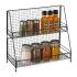S týmto praktickým stojanom na koreničky budete mať v kuchyni vždy po ruke koreničky, malé fľaštičky na ocot a olej, plechovky na čaj a ďalšie. Kuchynský organizér je ideálny na kuchynskú linku, kde optimálne využíva dostupný priestor pre úsporu miesta. S policou môžete mať v kuchynskej skrinke poriadok v kuchynskom náradí a ingredienciách. Vďaka jednoduchému dizajnu je možné organizér na korenie využiť aj ako stolovú poličku pri pracovnom stole alebo v kúpeľni.Veľkosť V x Š x H: cca 35 x 40 x 16 cmRozmer dna Š x H: cca 38 x 15 cmRozmer hore Š x H: cca 38 x 9 cmVzdialenosť medzi podlahami: cca 16 cmNosnosť: cca 4 kg na poschodieVáži cca 650gVyrobené z kovuV čiernej farbe10035385