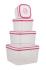 8-dielna sada úložných boxov- 4 dózy s 4 vrchnákmi S gumovým tesnením utesnené veko dózy, ktoré veko pevne uzavre. FUNKCIA oznacenia dátumu vloženia potraviny do boxu: otočné koliesko so stupnicou 1-31. Vyrobené z vysoko kvalitného potravinárskeho plastu Netoxické, bez chuti, zdravé a bezpečné - vhodné do mrazáku, bezpečné v mikrovlnnej rúre - Vhodná teplota: - 20 ? ~ + 120 ? vhodné do umývačky - Kapacita: 2,65 l / 1,4 l / 0,7 l / 0,34 l Upozornenie: - Povoľte veko pri vložení do mikrovlnnej rúry 2159