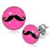 Puzetové náušnice z chirurgickej ocele, čierne fúzy na ružovom podklade SP39.27