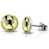 Oceľové náušnice s puzetovým zapínaním, čierny škorpión na žltom podklade, glazúra.
