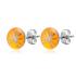 Okrúhle oceľové náušnice, priehľadná glazúra, pavúk bielej farby na žltom podklade, puzety.