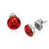 Oceľové náušnice, okrúhla hlavička, priesvitná glazúra, text FUCK ME, červené pozadie.