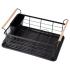 Elegantný čierny stojan na riad. Má priestor na taniere, poháre a príbory. Vybavený odkvapkávačom.Odkvapkávač na riad s rozmermi 42,5 x 29,5 x 19 cm. Uľahčuje sušenie ručne umývaných príborov a tanierov a chráni kuchynskú dosku.Odkvapkávač je vyrobený z nerezového kovu v čiernej farbe. Vybavený odnímateľným podnosom z kvalitného čierneho plastu.Minimalistický štýl a tlmené farby sú charakteristické črty tohto produktu, ktoré mu umožňujú zapadnúť do každého interiéru a vytvoriť tak súdržný celok. Mimoriadne krásne vyzerá v kuchyniach zariadených v klasickom štýle, ale aj v moderných či industriálnych.Odkvapkávač riadu má vyhradený priestor pre taniere a šálky. Navyše je vybavený odnímateľným odkvapkávačom na príbory, ktorý možno namontovať do odkvapkávača alebo zvonka.Vybavený dvoma rúčkami z dreva, ktoré uľahčujú prenášanie a zároveň sú zaujímavým doplnkom podčiarkujúcim jedinečný vzhľad odkvapkávača riadu.Kompaktný odkvapkávač riadu s pohodlnými rukoväťami. Odkvapkávač je priestranný a užitočný v každej kuchyni. Je elegantne spracovaný a zároveň funkčný. Jednoduché čistenie. Má odnímateľnú odkvapkávaciu misku, vďaka čomu sa ľahko udržiava v čistote. - 150623