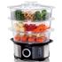 Parný hrniec, príkon 1000 W, 3 nádoby na varenie, kapacita nádob 12,25 l, miska na varenie ryže 1,5 l, nadstavec na varenie vajec, doplňovanie vody z vonka, časový spínač, objem nádoby na vodu 1,4 l