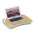 Nezáleží na tom, či pracujete v domácej kancelárii alebo vo voľnom čase surfujete na webe na svojom notebooku – táto podložka vám ponúka pohodlnú podložku na notebook. Mäkký vankúš s výplňou z pamäťovej peny sa dokonale prispôsobí vášmu telu a zaistí vysoký komfort. Bambusová polica vytvára prirodzený vzhľad a ponúka priestor pre notebooky až do 17,3 palcov. Podnos má navyše 2 držiaky na mobilné telefóny a tablety a praktický protišmykový pásik, ktorý zabraňuje pádu notebooku.Rozmery V x Š x H: cca 8 x 51 x 36 cmVáži cca 2,2 kgVyrobené z bambusu, polyesteru, penyPrírodné farebné prevedenie, modrý vankúš10036710