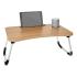 Praktický stolík na notebook, ktorý sa bude hodiť do každej domácnosti. Každý používateľ notebooku určite potvrdí, že toto zariadenie nepoužívame vždy na stole, ale využívame jeho mobilitu a kladieme ho na kolená, na posteľ, na pohovku atď. Pohodlný a stabilný stojan na počítač zaisťuje, že môžeme zariadenie používať pohodlne, bezpečne stojí a neprevrhne sa. Chráni tiež zariadenie pred prehriatím (napr. keď je na deke, posteľnej bielizni alebo pohovke).Čo si zaslúži pozornosť, je nepochybne veľmi atraktívny dizajn, ktorý má tento stolík na notebook. Je elegantný a moderný, pričom je ergonomický a efektívny, aby sa ľahko používal.S týmto praktickým stolíkom na notebook môžete pohodlne pracovať v akomkoľvek prostredí. Môže byť umiestnený na posteli, stole alebo dokonca na pracovnom stole, vďaka čomu je používanie notebooku oveľa pohodlnejšie.Stolík sa veľmi zíde aj pri používaní tabletu, pretože má špeciálne miesto, kde je možné tento typ zariadenia bezpečne umiestniť zvisle.Stojan na notebook má navyše veľmi praktický priestor na pohár. Má špeciálny otvor, ktorý chráni pred náhodným dotykom a vyliatím kvapaliny na zariadenie.Stojan na notebook má možnosť sklopenia nôh, čo je veľmi užitočné, keď sa nepoužíva, pretože zaberá málo miesta a dá sa ľahko skryť.Parametre:Materiál: plast, hliníkProtišmykové nožičky Rozmery: 28/60/40 cm Hmotnosť: 2 kg iso 00014199
