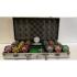Pokrová sada Royal Flush 300 ks, 13g, vysoké hodnoty Kvalitný klasický pokrový 300 kusový set v hliníkovom kufríku. Očíslované keramické žetóny vážia 13 gramov a majú kovové jadro.Set obsahuje všetko, čo budete potrebovať pre pokrový turnaj pre 4-6 hráčov. Príslušenstvo: - 2 balíčky kariet (100% plastové Fournier Poker room) - 5 ks červených kociek - žetón Dealer - hliníkový kufrík Žetóny: - č. 25, zelené: 50 ks - č. 50, oranžové: 50 ks - č. 100, čierne: 75 ks - č. 500, červené: 50 ks - č. 1000, žlté: 50 ks - č. 5 000, ružové: 25 ksHmotnosť žetónu: 13 g Priemer žetónu: 40 mm Hrúbka žetónu: 3 mm