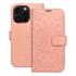 Detail Puzdro Mezzo Book iPhone 16 Pro, vzor mandala - oranžové