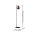 Stojacia lampa Cordoba z kovu so skleneným guľatým tienidlom Stojacia lampa Cordoba sa skladá z decentného čierneho kovového stojana, ktorý je kombinovaný s guľatým tienidlom smerujúcim nadol, ktoré je pokovované na medenú farbu. Pohodlné zapínanie a vypínanie je možné pomocou nožného vypínača na kábli. Zrkadlový dizajn tienidla na lampu v medenej farbe umožňuje pohľad na žiarovku len v zapnutom stave a zaisťuje tak elegantný a zároveň zaujímavý vzhľad svietidla, ktoré vyzerá obzvlášť pekne s žiarovkou s vláknom. Stojacia lampa dokonale dopĺňa moderné a minimalistické interiéry a ponúka štýlové a efektné osvetlenie miestnosti – či už v obývacej izbe alebo v jedálni. Žiarovka nie je súčasťou dodávky. Svietidlo je vhodné pre všetky typy žiaroviek s päticou E27.