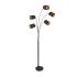 Stojacia lampa Clarke s piatimi lampami z čierneho lakovaného železa a textilnými tienidlami so zlatými akcentmi Clarke je moderná stojacia lampa s jednoduchým dizajnom vyrobená z čierneho kovu a textilu. Stojí na okrúhlom podstavci, z ktorého do oblúka vyrastá päť vzpier, z ktorých každá je zakončená valcovým tienidlom. Tienidlá sú tiež v čiernej farbe, ale na ich povrchu sú nenápadné lineárne dierovanie v zlatej farbe, ktoré im dodáva osobitý akcent. Vnútorná strana ich tienidiel je tiež zlatej farby a obklopuje zdroj svetla. Stojaciu lampu Clarke možno vybaviť príslušnými svetelnými zdrojmi, a tak umožňuje voľný výber farby a intenzity svetla. Je dokonalým spoločníkom pre útulné osvetlenie v obývacej izbe a dá sa pohodlne zapínať a vypínať pomocou nožného spínača.