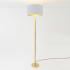 Pôsobivo navrhnutá stojacia lampa Cancelliere Rotonda v bielej a zlatej farbe Stojacia lampa Cancelliere Rotonda má moderný, elegantný vzhľad. Jej klasický tvar získava očarujúci nádych vďaka kovanému rámu v zlatej farbe a dvojfarebnému dizajnu tienidla - zvonka biele, zvnútra zlaté. Hneď po zapnutí osvetlenia zlatý odtieň konkuruje svetlu z použitej žiarovky. Výsledkom je útulné doplnkové osvetlenie s veľmi pútavým svetelným efektom. Tienidlo je vyrobené z Perla Silk - trblietavej hodvábnej tkaniny - a je vybavené nožným spínačom na pohodlné ovládanie