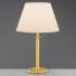 Ušlachtilá kompozícia klasických tvarov a prírodných farieb - stolová lampa Royce Royce je stolová lampa, ktorá sa skladá z klasického textilného tienidlo na lampu vyrobeného z chintzu a pätice žiarovky vyrobenej z mosadze. Patica žiarovky je navrhnutá s matným povrchom a lesklými akcentmi, vdaka comu vyzerá mimoriadne elegantne. Krémovo zafarbené textilné tienidlo na lampu sa smerom dole rozširuje a svetlo jemne vyžaruje, cím v miestnosti vytvára akcenty teplého svetla. Royce je ideálny ako doplnkové osvetlenie obývacích izieb s moderným alebo klasickým nábytkom. Svetelný zdroj je možné zapnút a vypnút pomocou nainštalovaného káblového spínaca. Vyrobené v Nemecku.