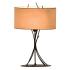 LIVING OVAL - neobvyklá stolová lampa s oválnym tienidlom Stolová lampa LIVING OVAL má zvláštny a neobvyklý vzhľad vďaka mierne odlišnému tvaru rámu zloženého z mnohých jednotlivých vzpier v rôznych výškach, ktoré sa vinú smerom nahor a čiastočne vyčnievajú z hornej časti tienidla. Kovový rám bol ručne tónovaný do hnedočiernej a patinovaný do zlatej farby. Stolová lampa LIVING OVAL vyžaruje teplé a atmosférické svetlo vďaka oválnemu tienidlu, ktoré je vyrobené z priehľadnej fólie a tiež bolo ručne maľované líniovým lakom. Stolová lampa v teplých, moderných farbách, ktorú možno zakomponovať do mnohých interiérov. Tieto vysokokvalitné svietidlá z európskej produkcie sú ručne vyrobené z prírodných materiálov a vyznačujú sa vysokou úrovňou kvality. Malé množstvá umožňujú dosiahnuť individualitu, rozmanitosť a jedinečnosť výrobkov.