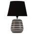Ciernobiela keramická a textilná stolová lampa Dressy Sparkle Dressy Sparkle je stolová lampa, ktorá upúta pozornost a v miestnosti vyzerá takmer ako dizajnový kúsok. Podstavec lampy je vyrobený z keramiky a má cierno-biely pruhovaný dizajn. V malej vzdialenosti od neho sa nachádza cierne, mierne kónicky tvarované tienidlo z látky. Stolnú lampu možno použit ako další zdroj svetla v obývacej izbe aj ako nocnú lampu. Nech je umiestnený kdekolvek, vynikne a poskytuje príjemné osvetlenie bez oslnenia cez cierne tienidlo.