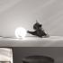 Detail Stolná lampa Karman Maoo, čierna keramika, sklo, figúrka mačky