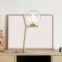 Kvalitná stolová lampa Camely v zlatej farbe Táto stolová lampa zo série svietidiel Camely, ktorú navrhol taliansky architekt a dizajnér Davide Negri, je štýlovým zdrojom svetla do obývacích izieb a spální. Kovová konštrukcia s okrúhlym, veľmi plochým podstavcom a krátkou konzolou, na ktorej je upevnené tienidlo, má vzhľad brúseného zlata. Tienidlo z borosilikátového skla je rozdelené na číry, sférický vonkajší plášť a pieskovaný vnútorný valec. Ten uzatvára používaný svetelný zdroj G9. Jas možno regulovať pomocou integrovaného stmievacieho spínača na kábli, ak sú zvolené stmievateľné svetelné zdroje.