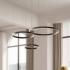 LED závesné svietidlo Gravity s tromi krúžkami v čiernej farbe LED závesné svietidlo Gravity sa skladá z troch krúžkov z čierneho kovu s rôznymi priemermi, ktoré visia v rôznych výškach od stropu. Vynikajúco sa hodí do moderných interiérov, či už do veľkej obývacej kuchyne, obývacej izby alebo jedálne. Vďaka čiernej farbe a čistým líniám sa stane štýlovým prvkom, ktorý upúta pozornosť v každej miestnosti. Integrované LED svetelné zdroje zaisťujú príjemné osvetlenie a zdôrazňujú modernú estetiku svietidla. S farbou svetla 4 000 K svietidlo ponúka univerzálnu bielu farbu, ktorá vytvára príjemnú a produktívnu atmosféru. LED závesné svietidlo Gravity je ideálnou voľbou pre všetkých, ktorí kladú dôraz na dizajn a efektivitu.