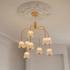 LED luster Asteea 9 – exkluzívne dizajnové závesné svietidlo pre atmosférické osvetlenie 9-plameňové luster zo série svietidiel Asteea zaujme svojou inovatívnou konštrukciou: na jednom ramene sú namontované dva svetelné zdroje, čo svietidlu dodáva ľahký a modulárny vzhľad. Asteea vytvára nepriame svetlo, ktoré osvetľuje miestnosť bez oslnenia. Svetlo sa odráža v drážkovaných akrylových tienidlách a vytvára decentnú, živú hru svetla. LED luster Asteea 9 spája škandinávsku eleganciu s funkčným osvetlením. Integrované LED svetelné zdroje poskytujú teplú bielu svetlo, ktoré vytvára príjemnú atmosféru. S indexom podania farieb 90 Ra je zaručená prirodzená a harmonická kvalita svetla, ktorá je ideálna pre obývacie a jedálenské priestory