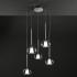 Závesné svietidlo Beba s piatimi výraznými sklenenými tienidlami Z okrúhleho vrchlíka závesného svietidla Beba vychádza päť káblov, každý s nádherne navrhnutým tienidlom. Podlhovasté tienidlo, v spodnej časti baňaté, je vyrobené z číreho pyrexového skla - siaha ďaleko nahor a obopína časť kábla. Kónicky tvarovaná vnútorná časť tienidla je satinovaná, aby sa zabezpečilo osvetlenie bez oslnenia a vytvoril sa jedinečný vzhľad. Každé z tienidiel možno umiestniť podľa potreby pomocou samostatného závesu s vedením kábla, ktorý sa montuje na strop oddelene od baldachýnu.