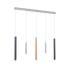 Závesné svietidlo Pure-Gemin LED s piatimi valcovými svietidlami na dlhom vrchlíku Dve krátke a tri dlhé, štíhle a valcovité svietidlá visia z dlhého baldachýnu v rôznych závesoch a dokonale osvetlujú napríklad dlhý stôl alebo pult. Jednotlivé svietidlá sú vybavené teplými bielymi LED diódami, ktoré sa dajú stmievat pomocou nástenného vypínaca. Táto technológia Simply-dim umožnuje regulovat jas svietidla zo 100 % intenzity svetla na 10 % intenzity svetla prostredníctvom existujúceho spínaca. Pamätová funkcia uloží zvolené nastavenie až do dalšieho zapnutia alebo do zmeny výberu. Puristický vzhlad závesného svietidla zo série Pure je estetický a rafinovaný zároven a robí z neho pútavý prvok v miestnosti.