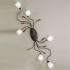 6-svetelné stropné svietidlo Campana s kvetmi z opálového skla Stropné svietidlo Campana je dômyselne vyrobené z kvetov z opálového skla a 3 zvlnených kovových ramien. Svetlo má celkovú dĺžku 108 cm a dá sa pripevniť na strop pomocou oválneho podstavca. Zlatá patina listov je obzvlášť očarujúca a ešte krajšie rozžiari 6 opálových sklenených kvetov.