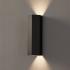 Nástenné svietidlo Hexo mini 2.0 - čierne práškové lakovanie a brúsenie Atraktívne nástenné svietidlo Hexo mini 2.0 je dokonalým doplnkom na atmosférické dodatočné osvetlenie v mnohých štýloch interiéru. Je celé vyrobené z hliníka a vybavené dvoma päticami (GU10), do ktorých možno vložiť všetky svetelné zdroje s príslušnou päticou - vrátane energeticky úsporných LED žiaroviek. Svetlo vyžaruje rovnomerne smerom nahor a nadol a vytvára dekoratívne akcenty na stene.