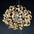 Závesné svietidlo GOLD - vhodné do luxusného životného prostredia Závesná lampa GOLD sa skladá z kovovej podstavy v strede chrómu: Z tejto Basis sa rozvetvujú kovové vzpery do všetkých strán, z ktorých koncov sa vinutie zlatých kovových prvkov spája a vytvára okrúhle telo žiarovky. Halogénové žiarovky svietia zo stredu prívesného svetla GOLD a dodávajú zlatému tónu zvláštny lesk. Žiarovky nie sú súcastou dodávky.