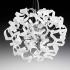 Závesné svietidlo BIELA - fascinujúca tvorba žiarovky v chrómovej a bielej farbe Závesné svietidlo WHITE má vo vnútri kovovú gulôcku chrómovej farby, z ktorej sa tiahne splet kovových pásikov, na koncoch ktorých sa 24 skrútených prvkov z bieleho skla spája a vytvára okrúhle telo žiarovky. Šest halogénových žiaroviek poskytuje teplú žiaru. Vdaka vzájomnej súhre chrómu a bielej farby je životná atmosféra obzvlášt svieža. Žiarovky nie sú súcastou dodávky.