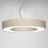 Výnimocné závesné LED svietidlo Donut, stmievatelné pomocou stmievaca odtokovej hrany Názov tohto závesného svetla Donut už naznacuje tvar, pretože toto okrúhle LED svetlo má vo vnútri volný priestor, cez ktorý divák vidí kruhový stropný kryt a tri kyvadlové ocelové káble. tienidlo na lampu od spolocnosti Donut je vyrobené z chintzu a na spodnej strane je pokryté polykarbonátovým krytom v bielej farbe. LED diódy za ním sú trvale nainštalované a bez oslnenia svietia svetlom do miestnosti a poskytujú nepriamu zložku svetla vo výške 10 percent. Jas je možné regulovat individuálne pomocou stmievaca s fázovým rezom. LED závesné svietidlo Donut je zavesené na troch ocelových kábloch, ktoré sa dajú pocas montáže jednotlivo skrátit. Donut je moderné svietidlo pre obývacie izby s rôznymi štýlmi vybavenia. Vyrobené v Nemecku.
