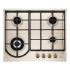 Plynová varná doska, otočné gombíky, 4 varné zóny, integrované elektrické zapaľovanie ovládačom, bezpečnostná termopoistka, liatinové podpery, farba krémová, rozmery pre instaláciu VxŠxH 4 x 56 x 48 cm