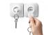 Nástenný držiak s kľúčenkou Qualy UnPlug, plastový nástenný držiak (zásuvka) a kľúčenka (zástrčka) Veľkosť 3x9x1,3cm