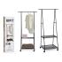 Využite praktický úložný priestor jednoduchého kovového stojana na oblečenie. Stojan na kabáty má 2 latkové police a vešiak na šaty. Stačí zavesiť bundy, kabáty alebo košele. Využite priestranný úložný priestor na svoje oblečenie, topánky, textil a ďalšie veci. Stojan na oblečenie je robustný a vďaka kolieskam bude jednoduché premiestniť ho kamkoľvek je to potrebné. Parametre:Rozmery: 45 x 157Farba: čiernazent 85092