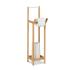 Držiak toaletného papiera a zásobník náhradného kotúča v jednomTáto kombinácia stojana na toaletný papier a držiak na náhradný kotúčik je dokonalým doplnkom do každej kúpeľne. Praktická polica ponúka priestor pre náhradné rolky, takže zásoby sú vždy po ruke, ak sa minie aktuálna rolka toaletného papiera. Ak chcete vymeniť toaletný papier, stačí vytiahnuť držiak toaletného papiera a nahor von. Voľne stojaci bambusový toaletný stojan je možné nainštalovať a poskytnúť vám flexibilnú akciu.Stojanový držiak na toaletný papier z bambusuVoľne stojaci úložný priestor na toaletný papier v potrebnomPolica ponúka priestor pre náhradné rolky, čistiace prostriedky a pod.Jednoduchá výmena role pomocou závesnej tyčePoužitý materiál je obzvlášť odolný voči vlhkostiProtišmykové chrániče podlahy zaisťujú bezpečný postojDodá vašej prirodzenej akciiDetailný držiak na toaletný papierCelkové rozmery V x Š x V: cca 72 x 17,5 x 24 cmVnútorná polica V x Š x V: cca 1 x 15 x 14 cmTyč na rolku Š x V: cca 16 x 1,5 cmSvetlá výška: cca 5,5 cmHmotnosť: cca 0,8 kgZaťažiteľné do cca 9 kgMateriál: bambus, MDFFarba: prírodná, bielarozsah doručenia1x stojan na toaletný papier po častiachmontážny materiáls nástrojomRD 10047332
