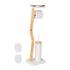 S elegantným toaletným stojanom budete mať toaletný papier a toaletnú kefu vždy po ruke. Praktický úložný priestor navyše ponúka priestor pre váš smartfón, vlhčené obrúsky a ďalšie. Či už v kúpeľni alebo na toalete pre hostí, voľne stojaci toaletný komorník môže byť umiestnený flexibilne a nemusí byť pripevnený k stene. Dekoratívny dizajn s bambusovými akcentmi sa stane skvelým pútačom v kúpeľni. Vymeniteľná hlavica kefky a odnímateľná plastová nádoba na kefku zaisťujú potrebnú hygienu.Praktická kombinácia toaletného papiera a držiaka na kefuHygienicky vymeniteľná hlavica kefky - Vrátane 2 náhradné hlaviceOdnímateľný držiak WC kefy pre jednoduché čistenieS úložným priestorom pre smartfón, mokrý toaletný papier Ťažká základná doska zaisťuje bezpečný stojanDekoratívny dizajn s prírodnými bambusovými akcentmiVoľne stojaca súprava WC kefy do kúpeľne alebo WC pre hostíDĺžka WC kefy: cca. 34,5 cmHlava kefky V x H: cca. 8 x 7,5 cmVnútorný závit D: cca. 1,2 cmŠírka držiaka toaletného papiera: cca. 13 cmPolice Š x H: cca. 18 x 10,5 cmRozmery V x Š x H: cca. 80,5 x 23 x 18 cmHmotnosť: cca. 2,3 kgMateriál: plast, bambus, kovV rôznych farbách10050740